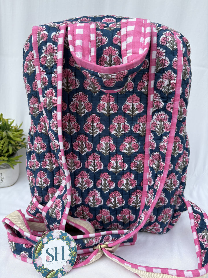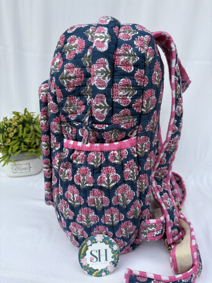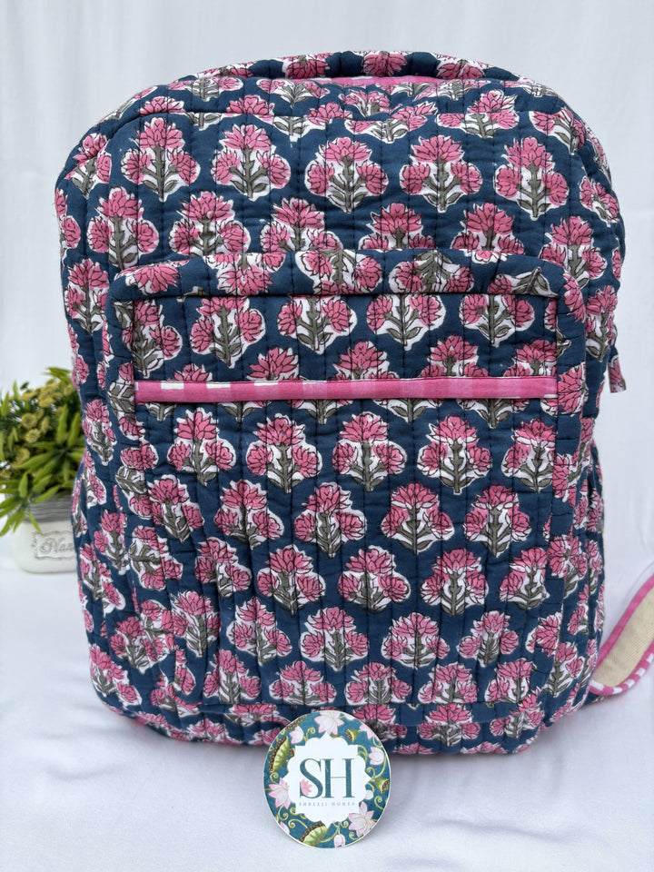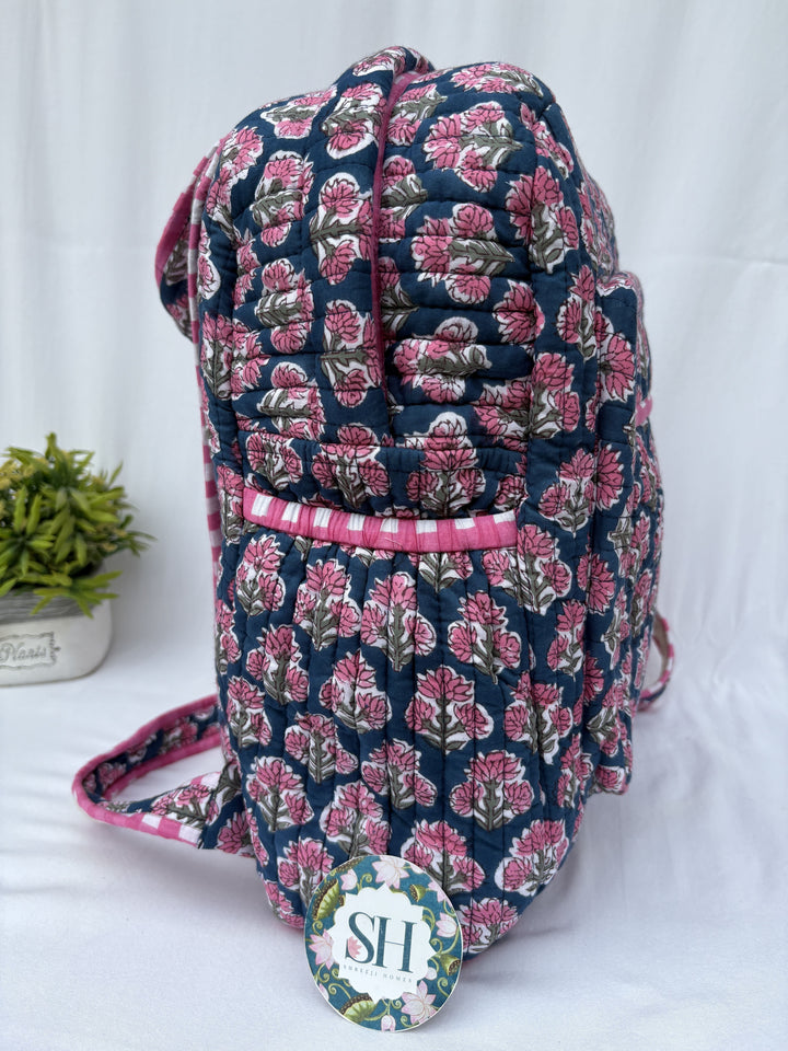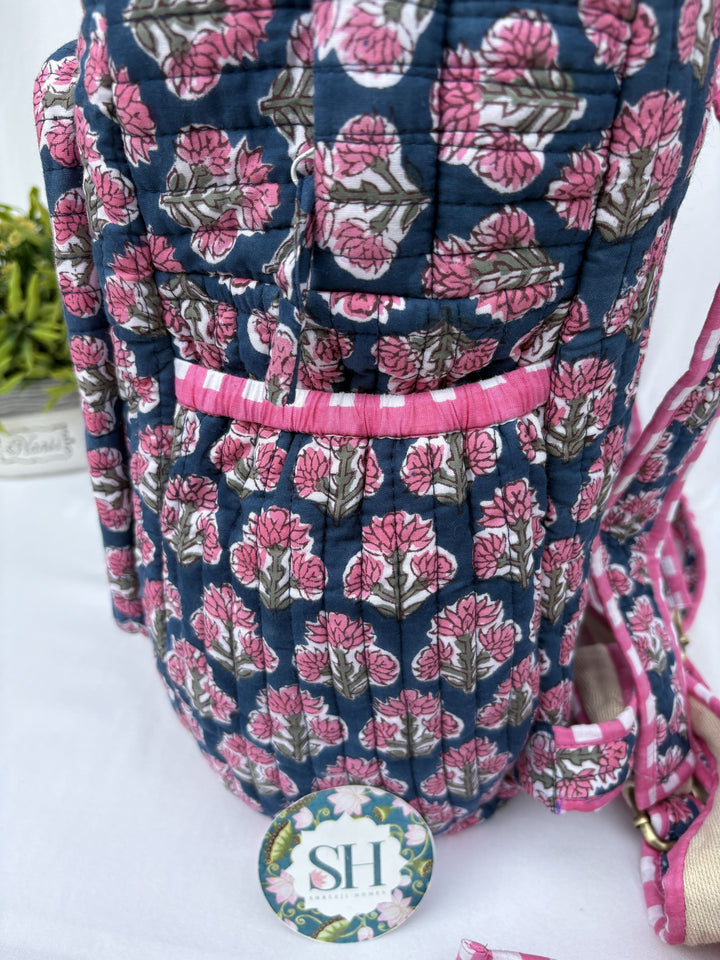 Our Hand Block Printed Quilted Backpacks are more than just bags—they're wearable art. Each one is crafted with care, featuring beautiful hand block printed fabric that showcases the rich tradition of artisanal design.